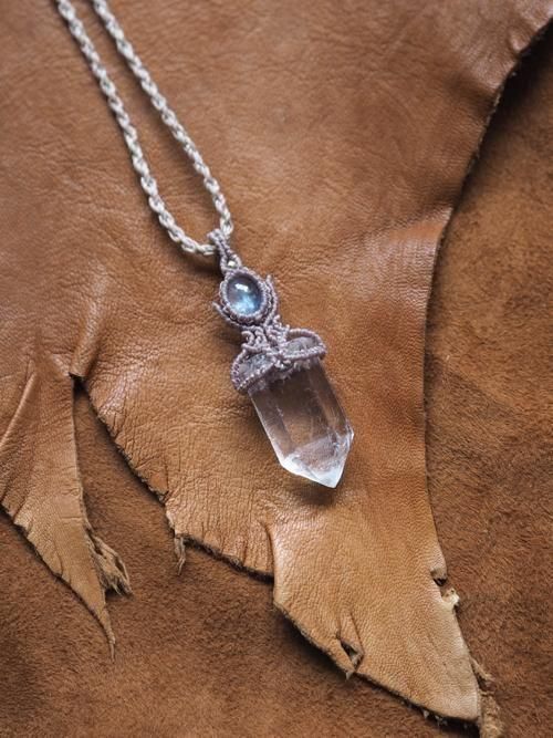 みずみずしい艶感と爽やかな藍色が印象的な高品質のカイヤナイトに、美しく整った氷柱と抜群の透明感を兼ね備えた高品質のヒマラヤ産水晶をあしらった2つ石デザインペンダント。