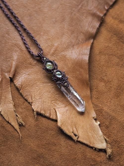 繊細な金針が幾十にも重なりあい輝く高品質のルチルクォーツに、色鮮やかなライムグリーンが美しい艶やかなペリドット、抜群の透明感とまっすぐ伸びた氷柱が印象的なヒマラヤ水晶の、3つの天然石をあしらった贅沢なデザインペンダント。