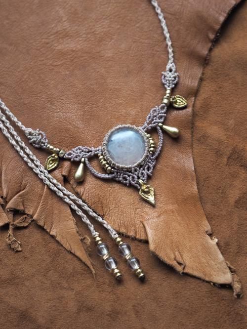 天然石が引き立つよう蝋引き糸を厳選し、繊細な編み目とアクセントに真鍮のビーズ贅沢にあしらいひと編みひと編み丁寧に編み上げています。