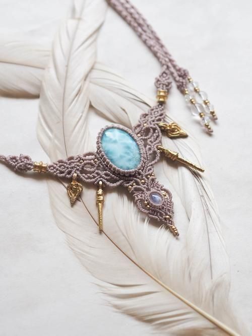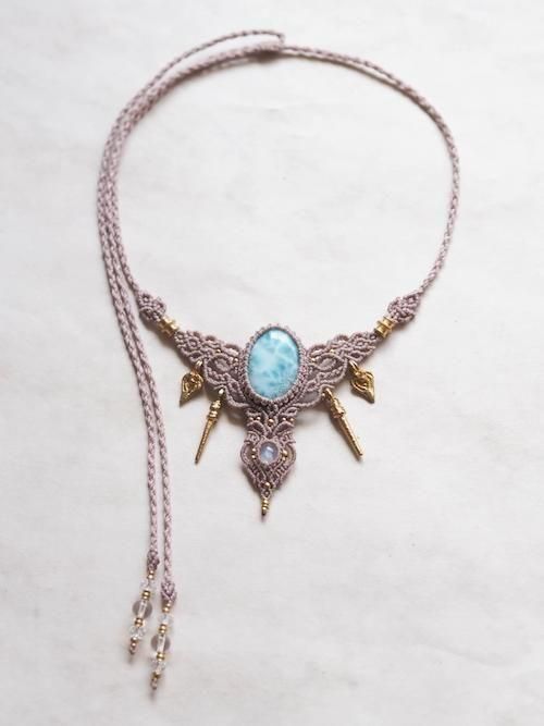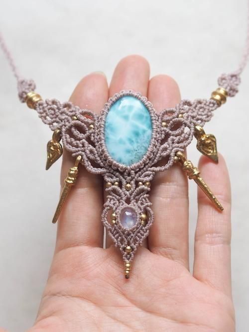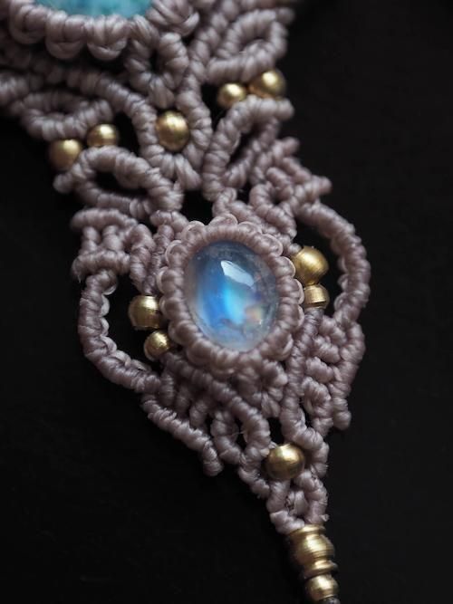 天然石が引き立つよう蝋引き糸を厳選し、繊細な編み目とアクセントに真鍮のビーズ贅沢にあしらいひと編みひと編み丁寧に編み上げています。