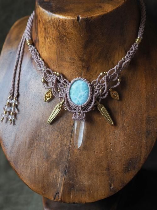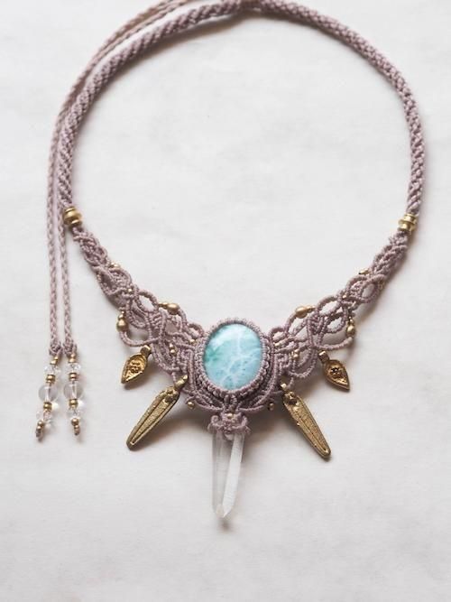 天然石が引き立つよう蝋引き糸を厳選し、繊細な編み目とアクセントに真鍮のビーズ贅沢にあしらいひと編みひと編み丁寧に編み上げています。
