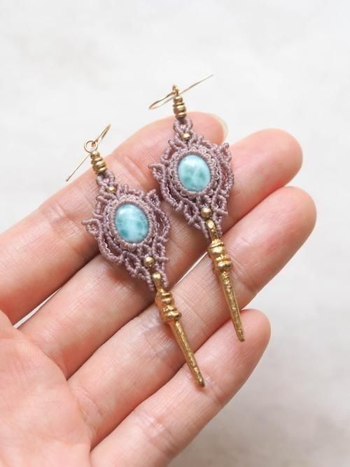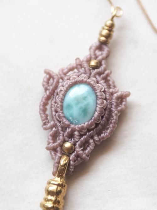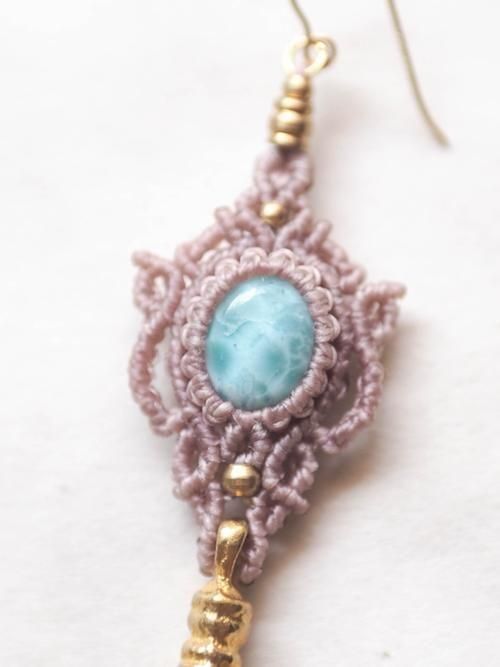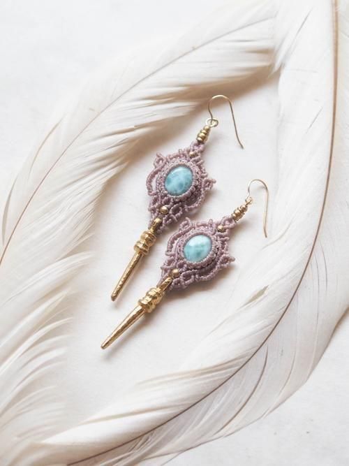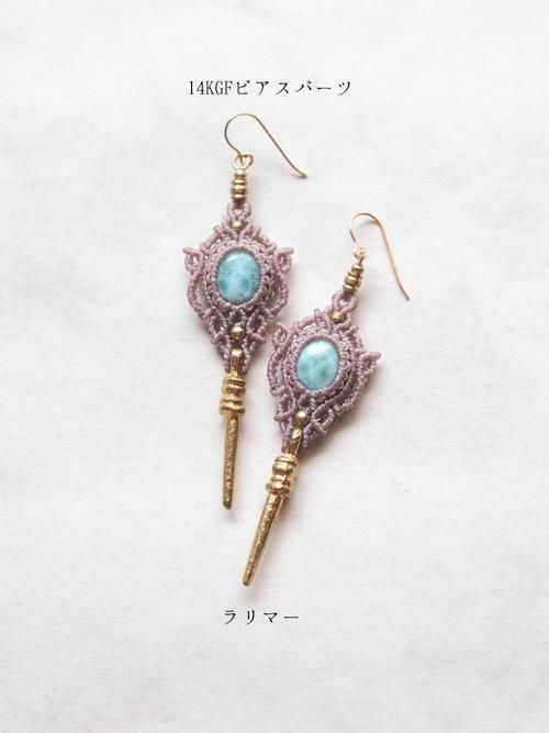 柔らかく穏やかなスカイブルーが印象的なラリマーをセレクトし、アンティーク調の真鍮パーツを組み合わせたペアピアス。